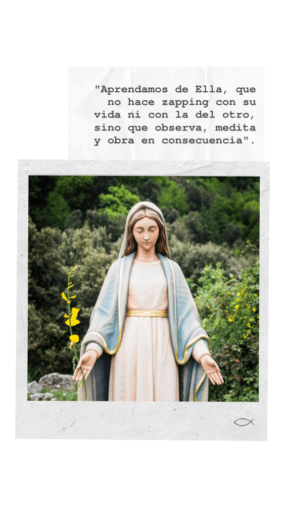 Si prestamos atención… si, precisamente, somos contemplativos, nos damos cuenta de que a María la acompaña una actitud de fondo: la confianza. Es su motor, su impulso, su sostén. Porque para poder profundizar en la vida hay que saber confiar. Aprendamos, entonces, de Ella, que no hace zapping con su vida ni con la del otro, sino que observa, medita y obra en consecuencia. No seamos “panqueques”, construyamos nuestra “catedral” interior confiando en que Dios también nos acompaña en la vida.