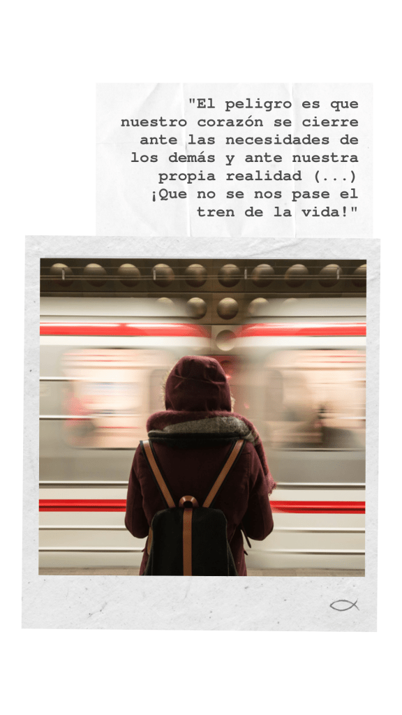 ¿Cuál es la propuesta entonces? Ser contemplativos. Que lo que nos sucede, lo que vemos, lo que escuchamos, no pase inadvertido. Detenernos, mirar en profundidad, escuchar con agudeza. Ya Jesús nos advertía usando las palabras de Isaías: “Por más que oigan, no comprenderán, por más que vean, no conocerán. Porque el corazón de este pueblo se ha endurecido, tienen tapados sus oídos y han cerrado sus ojos” (Mt 13,14-15). En el fondo, el peligro es que nuestro corazón se cierre ante las necesidades de los demás y ante nuestra propia realidad, y queramos cajonear, poner bajo la alfombra, lo que realmente importa, hacer como si estuviera “todo bien”. ¡Que no se nos pase el tren de la vida!