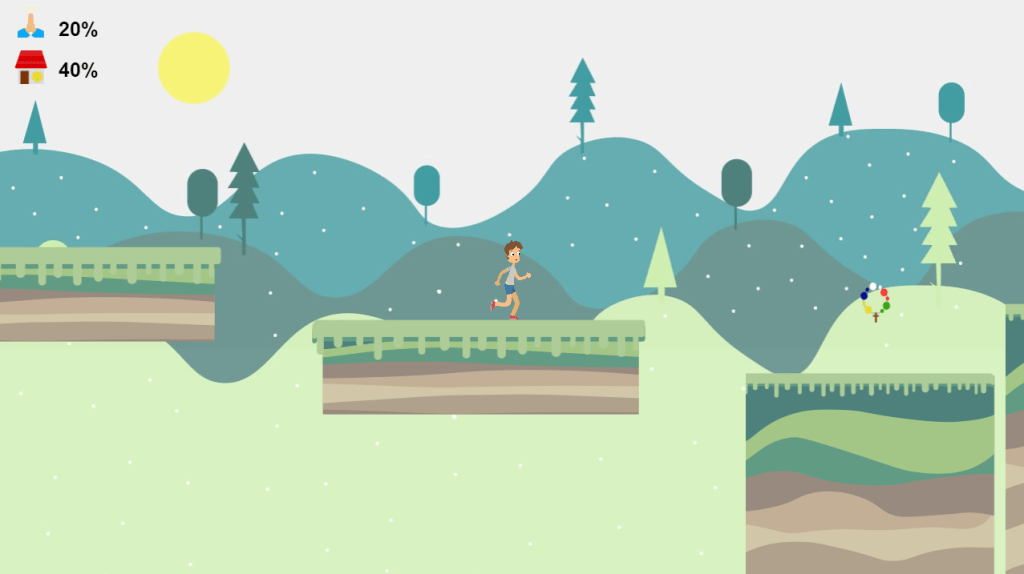 Ale: —La idea del videojuego surgió en plena pandemia, mientras estaba haciendo unos cursos de programación aparte de la facultad y se me ocurrió crear un videojuego para aprender sobre el tema. En ese momento, le comenté a Guada si le gustaba la idea de intentar hacer un videojuego relacionado a la IAM, para que nos sirviera para usarlo en nuestro grupo. A ella le gustó la propuesta y así fue como empezamos a pensar en toda la idea del videojuego, personajes, niveles, objetivos. Luego, Guada fue realizando todos los diseños y yo, la parte de programación para darle la funcionalidad.